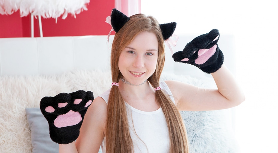 A sweet young barely legal Russian teenager in kitty cat costume, plays with her creamy muff in a beautiful solo girl VR masturbation video. She uses her favorite glass dildo to really work her little pussy into a creamy froth of teen love juices. She thinks of you enjoying her young body in 3D immersive virtual reality, knowing you are fapping inches from her nubile body, and it makes her cum closer and closer to a wild cum squirting orgasm for you.